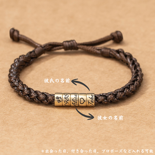 名入れ ブレスレット・家族の名前入り レザーブレスレット バレンタインデー