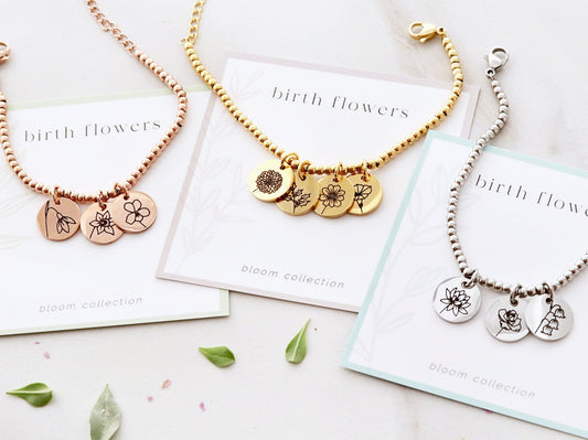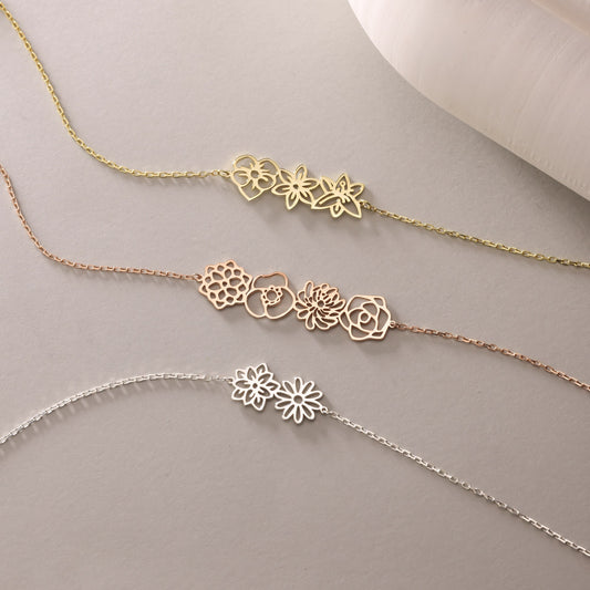 誕生花 ブレスレット|セミオーダー|3カラー|プレゼント|最大9本