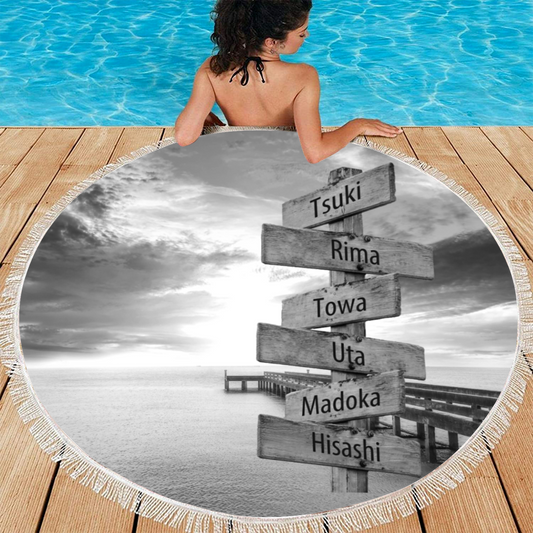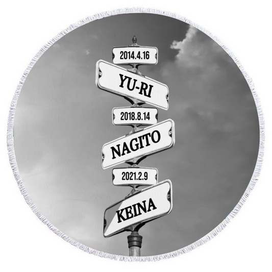 【オーダーメイド】名入れ円形ビーチタオル・誕生日ギフト・道路標識02