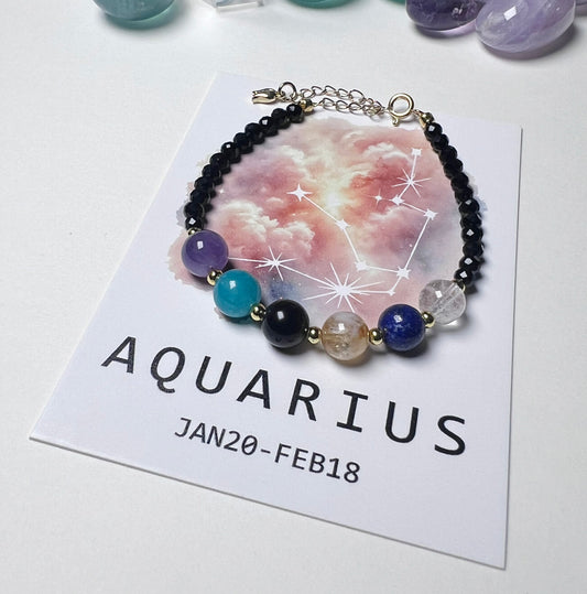 星の約束:十二星座アクアマリン水晶ブレスレット|誕生日ギフト