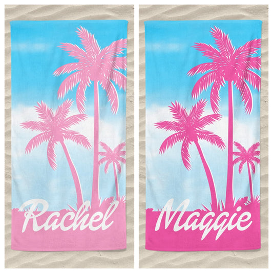 【オーダーメイド】名入れビーチタオル・誕生日ギフト・Pink Floral