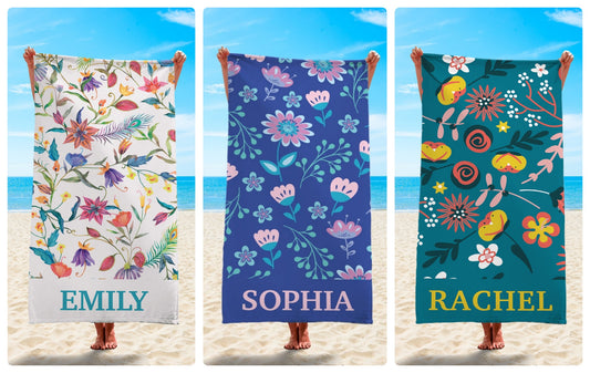 【オーダーメイド】名入れビーチタオル・誕生日ギフト・ Floral
