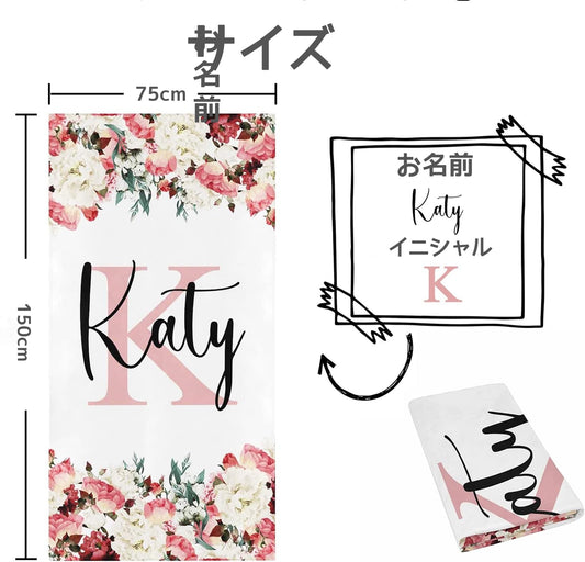 【オーダーメイド】名前入り☆フラワービーチタオル 海水浴 夏にピッタリ11
