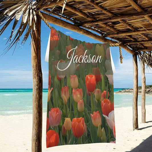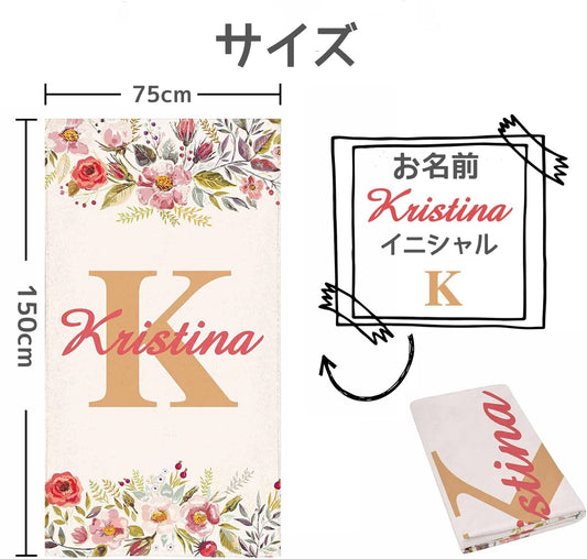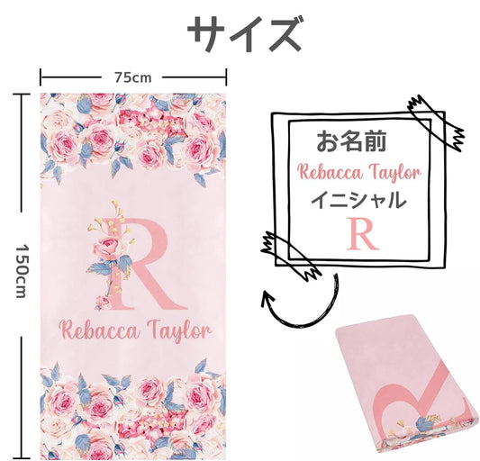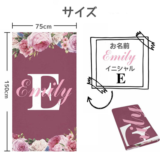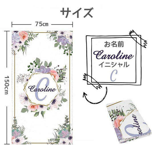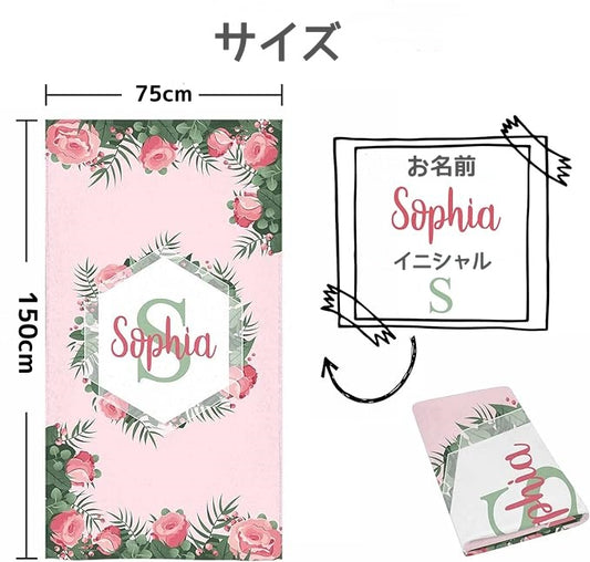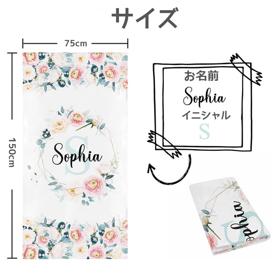 【オーダーメイド】名前入り☆子供向けのビーチタオル 花柄 夏にピッタリ1