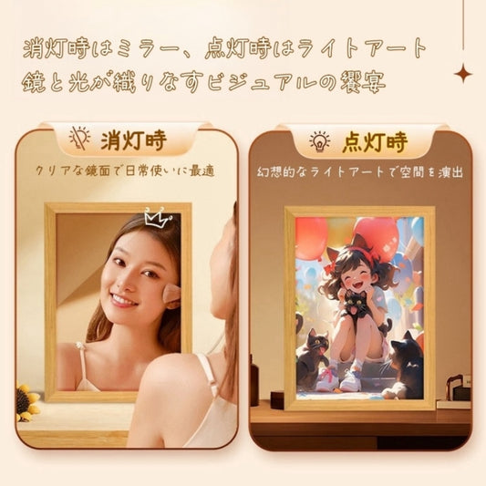 【オーダーメイド】お写真入りミラーLEDライト/家族・卒業・母の日・ペット・結婚祝いなどギフト