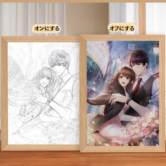 【オーダーメイド】お写真入りLEDライトペインティングシャドウボックス/ベッドルーム用木製スケッチナイトライト/アニメ写真画像♪ 誕生日ギフト