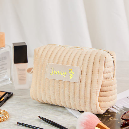 【オーダーメイド】名入れ誕生花化粧バッグ・化粧品収納 ・結婚式・母の日のギフト
