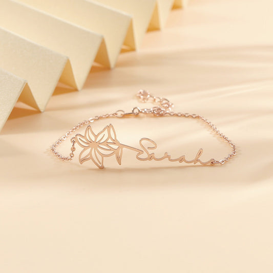 【オーダーメイド】名入れ誕生花ジュエリー・ブレスレット・誕生日ギフト・結婚記念日・おしゃれ・母の日