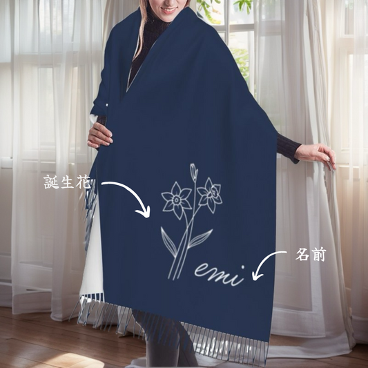 カシミア風名入れ誕生花スカーフ・かわいい おしゃれ・2025新作