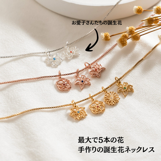 【オーダーメイド】誕生花のネックレス|誕生日ギフト|お母さんへの誕生日プレゼント|最大で5本の花