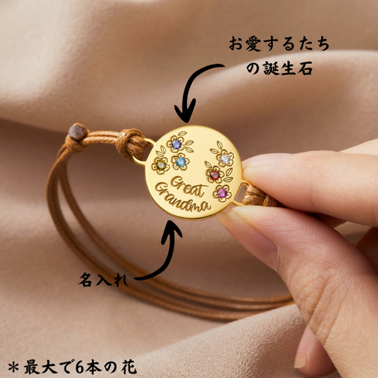【オーダーメイド】名入れ 誕生石のブレスレット|誕生日ギフト |敬老の日|おばあちゃんへのギフト|最大で6本の花