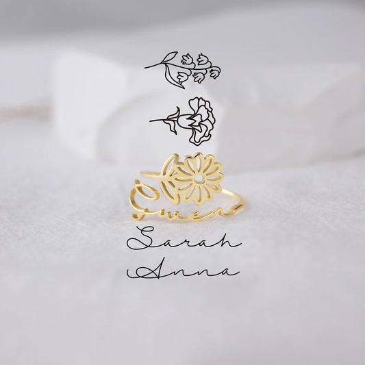 【オーダーメイド】名入れ誕生花ジュエリー・リング・誕生日ギフト・結婚記念日・おしゃれ・母の日・クリスマス