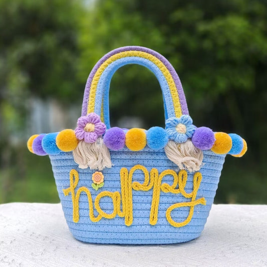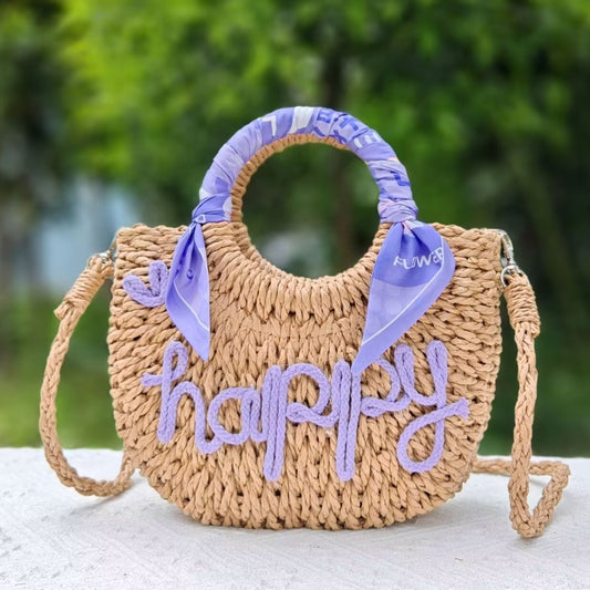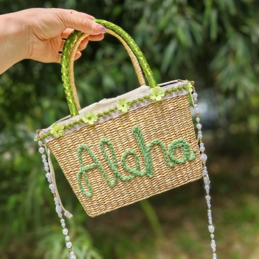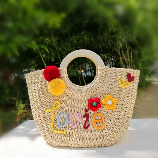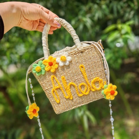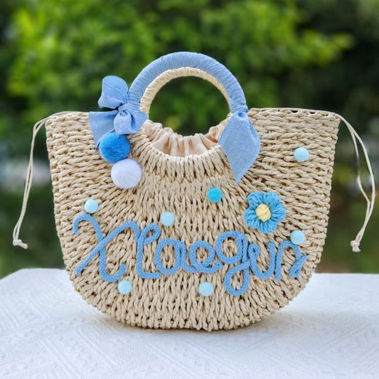 【オーダーメイド】名入れ草編みバッグ054・夏の織りハンドバッグ 手作り・大容量トート