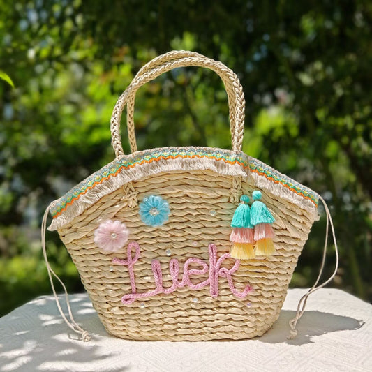 【オーダーメイド】名入れ草編みバッグ10・夏の織りハンドバッグ 手作り・大容量トート
