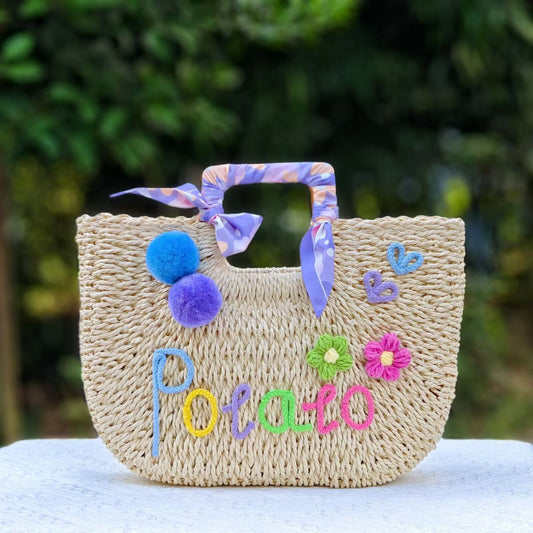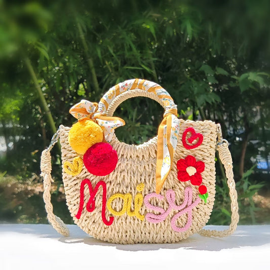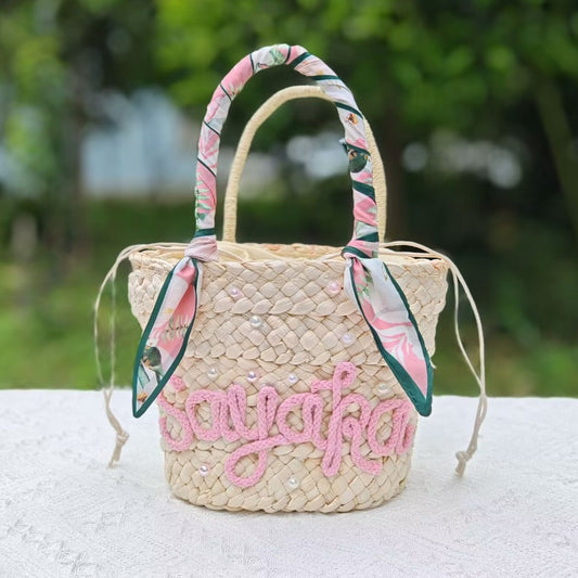 【オーダーメイド】名入れ草編みバッグ21・夏の織りハンドバッグ 手作り・大容量トート