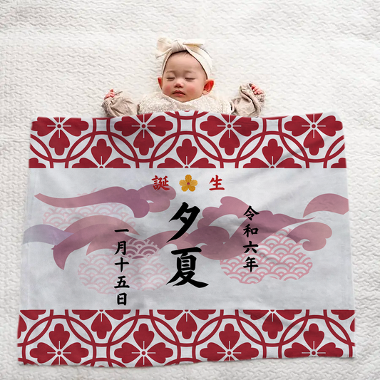 和柄ブランケット|名入れ|誕生日ギフト|出産祝い|オーダー|和柄デザイン