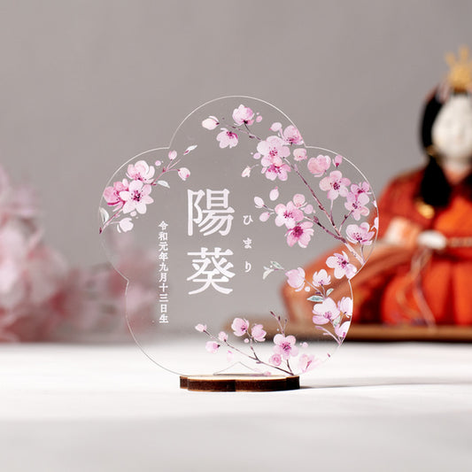 【アクリル名前札】桜の枝|ひな祭り|お花型 | 名入れ | 出産祝い