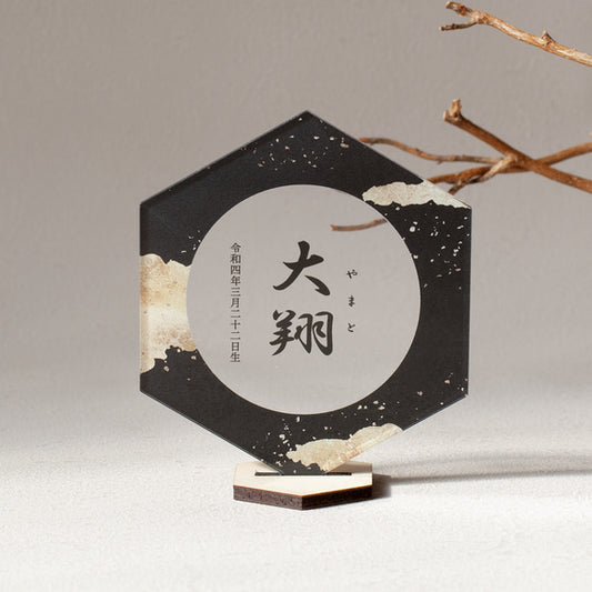 【アクリル名前札】黒金雲|ひな祭り|お花型 | 名入れ | 出産祝い