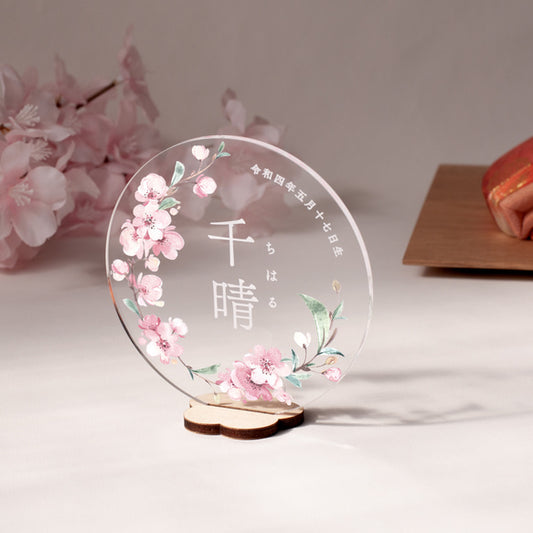 【アクリル名前札】桜のリースお花型|ひな祭り|お花型 | 名入れ | 出産祝い
