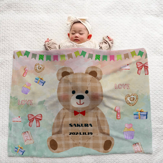水彩ブランケット|名入れ|誕生日ギフト|出産祝い|オーダー|熊デザイン