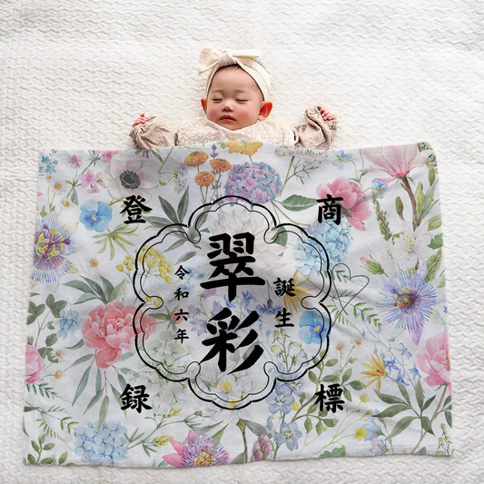 和柄ブランケット|名入れ|誕生日ギフト|出産祝い|オーダー|命名書デザイン 01