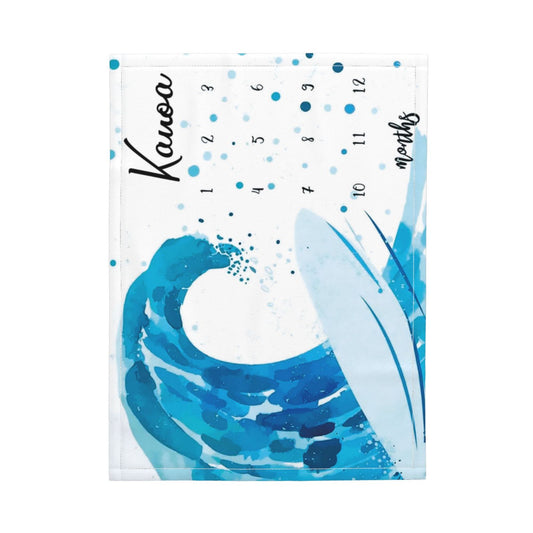 ブランケット|名入れ|誕生日ギフト|出産祝い|ブルー|波デザイン