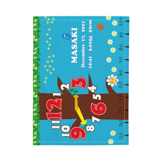 ブランケット|名入れ|誕生日ギフト|出産祝い|青い|木のデザイン