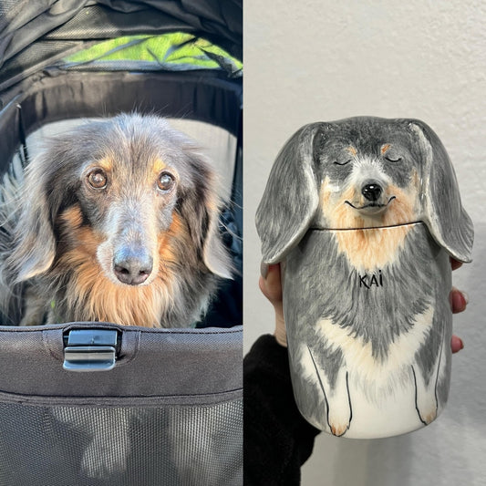 【オーダーメイド】世界に一つ 似顔絵 お名前入り ペット骨壷 ・うちの子・犬・猫 陶器製