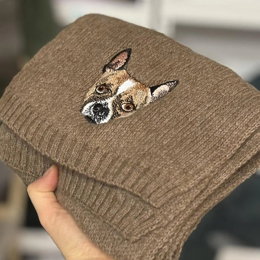 あなたのペットを世界に1つだけのアートマフラー作品に♪ | ペットイラスト | ペット似顔絵 | 犬 猫 うちの子 | 刺繍