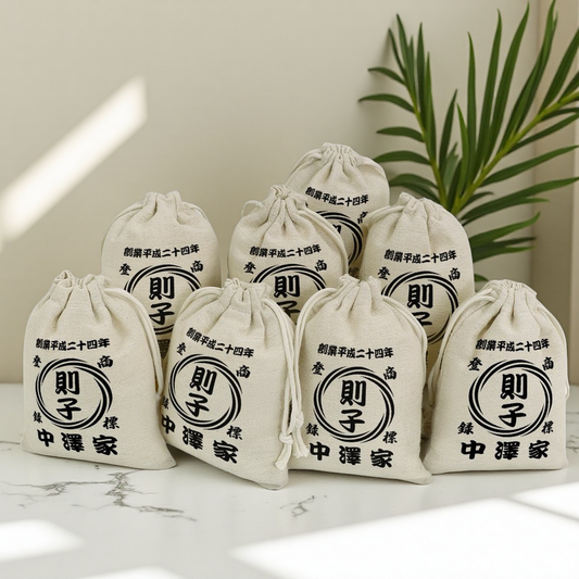 巾着 綿麻 名前入り 商店風 8 パック 開店祝い 誕生日ギフト
