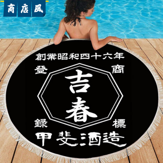 名前入り ビーチタオル|円形 ビーチタオル|商店風|開店祝い ギフト