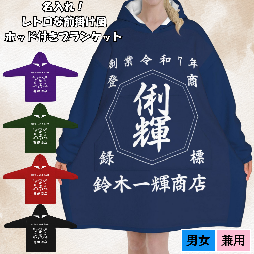 レトロな前掛け風 名入れ ホッド付きブランケット|父の日 母の日 還暦祝い 退職 誕生日 結婚祝い 昇進 無料 記念品 送別会 敬老の日