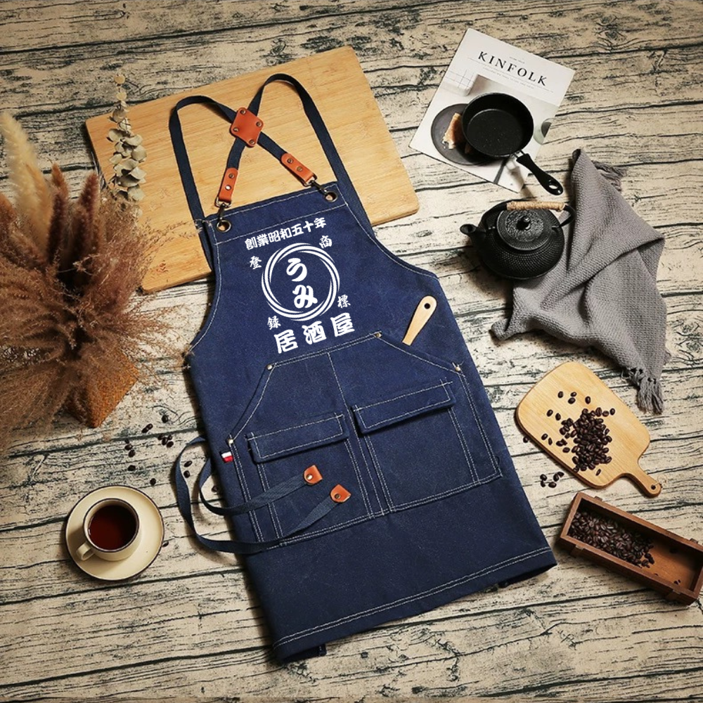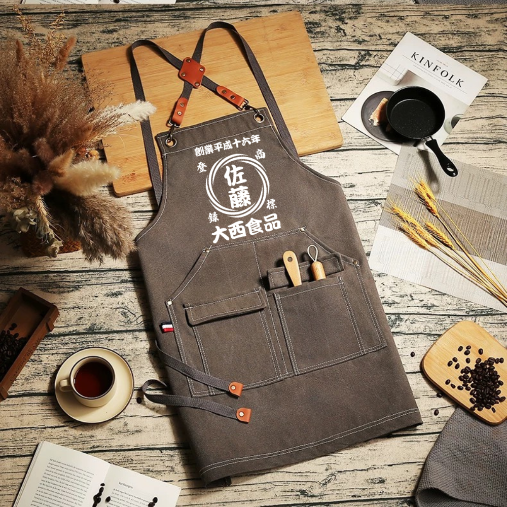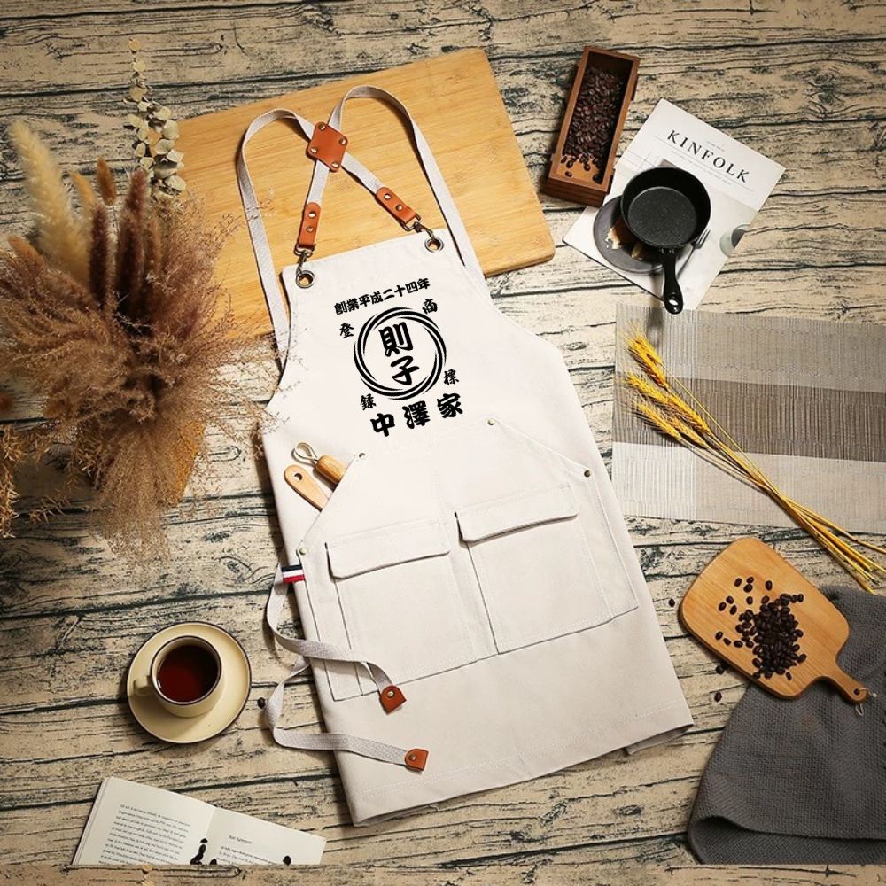 名前入り エプロン|商店風 帆前掛け風|創業年・開店祝い プレゼント 渦柄